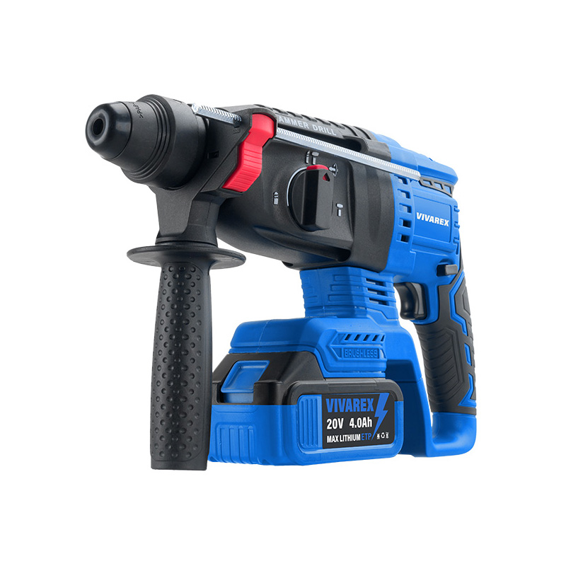 یکی از ابزارهای این مجموعه دریل بتن کن شارژی است که با سه نظام ۲۶ میلیمتری و سه حالت عملیاتی (سوراخکاری، چکشی و ترکیبی) کار میکند. این ابزار برای سوراخکاری در مصالح سخت مانند بتن، آجر و مصالح ساختمانی سبک مناسب است و با موتور براشلس عملکردی پایدار و دوام بالا دارد.