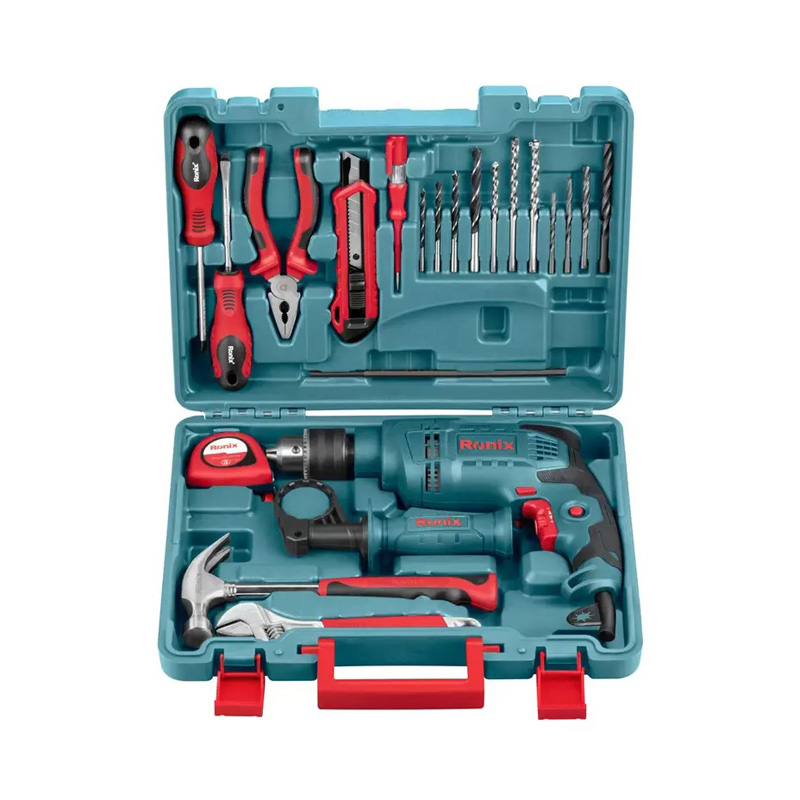 کیت دریل رونیکس مدل RS-0001، مجموعه کاملی از یک دریل چکشی و انواع مختلف ابزارهای دستی به همراه سریهای مته رونیکس با سایزهای متفاوت است که در داخل یک کیف ضد ضربه BMC بستهبندی شده است. دریل موجود در این کیت، مجهز به یک موتور 650 واتی بسیار مقاوم برای بهترین کارایی در سوراخکاری و دریلکاری چکشی است و میتواند سرعتی بالغ بر 2800 دور در دقیقه را ایجاد کند.سه نظام این دریل، از نوع آچاری، تمامفلزی و 13 میلیمتری است. از دیگر ویژگیهای این کیت دریل چکشی 13 میلیمتری رونیکس میتوان به برخورداری از دیمر کنترل سرعت و کلید چپگرد و راستگرد اشاره کرد که باز و بستهکردن پیچ را امکانپذیر میکند. برای دریافت اطلاعات تکمیلی در مورد کیت دریل برقی چکشی 13 میلیمتری رونیکس مدل RS-0001 به بخش توضیحات محصول مراجعه کنید. متعلقات: پیچگوشتی چهارسو، پیچگوشتی دوسو، انبر دست، کاتر، فازمتر، متر 3 متری، چکش دو شاخ، آچار فرانسه، 4 عدد مته چوب، 4عدد مته آهن، 3 عدد مته بتن، میله عمق سنج، دسته جانبی، آچار سه نظام