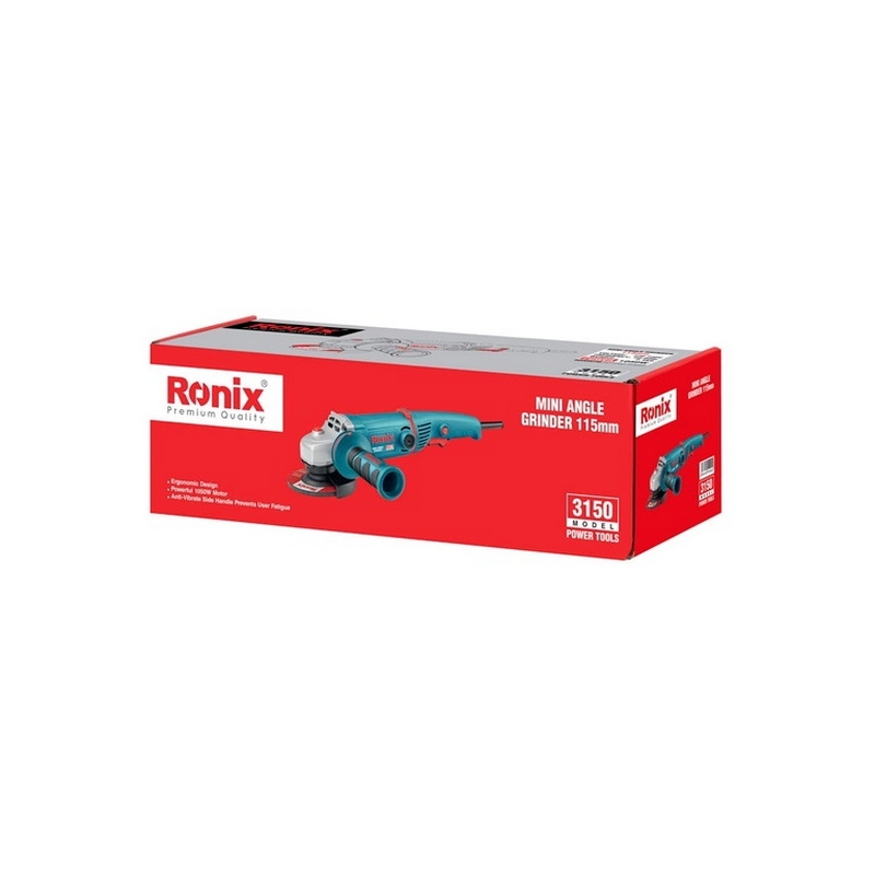 مینی فرز 125 میلی‌متری رونیکس مدل 3150، با توان 1050 وات و سرعت 9000 دور بر دقیقه، ابزاری ایده‌آل برای انجام انواع کارهای سنگین و دقیق در صنایع فلزی، ساختمانی و عمرانی است. از کاربردهای اصلی این مینی‌فرز می‌توان به برش انواع فلزات، سنگ‌ها و مصالح ساختمانی، ساب‌زنی سطوح، پاک‌سازی سطوح از زنگار و رنگ و انجام عملیات پرداخت‌کاری اشاره کرد.دسته این مینی‌فرز ارگونومیک و به صورت دو حالته طراحی شده تا کاربر در استفاده‌ طولانی مدت دچار خستگی نشود. بلبرینگ‌های ضد غبار به کار رفته در ساختار این مینی‌فرز، طول عمر قطعات را افزایش می‌دهد. همچنین مکانیزم قفل اسپیندل، باعث تعویض آسان و سریع صفحه برش می‌شود.در طراحی این مینی فرز، جهت تخلیه گرما و جلوگیری از آسیب به موتور دریچه تهویه هوا در نظر گرفته شده است. همچنین پوشش لاستیکی محافظ ضد حرارت نیز انتقال گرما به دست کاربر را کاهش می‌دهد. از دیگر مشخصات فنی این مینی فرز رونیکس مدل 3150 می‌توان به سیم‌پیچ‌های موتور با پوشش اپوکسی با کیفیت بالا و سیستم جریان هوای مستقیم آن اشاره کرد.